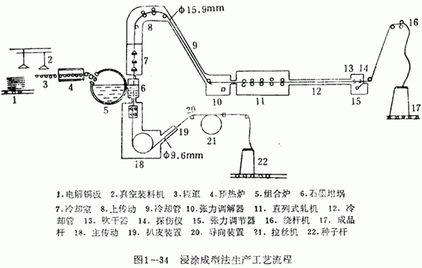 浸涂成型法無(wú)氧銅桿生產(chǎn)工藝流程如圖1-34所示